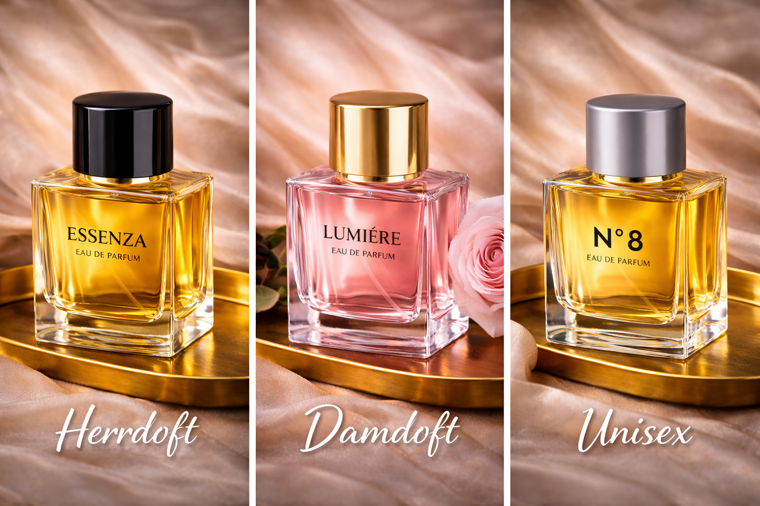 Vi erbjuder dofter inspirerade av ikoniska parfymer inom herr-, dam- och unisexsegmentet.